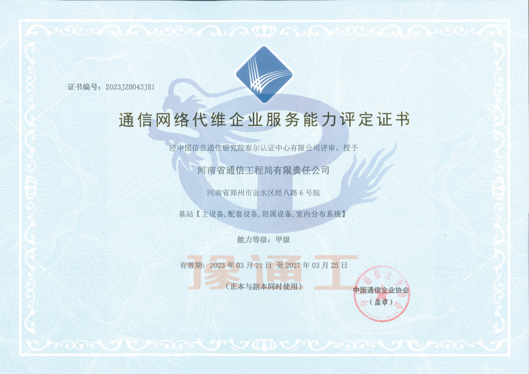 通信網(wǎng)絡(luò)代維基站專業(yè)甲級(jí)